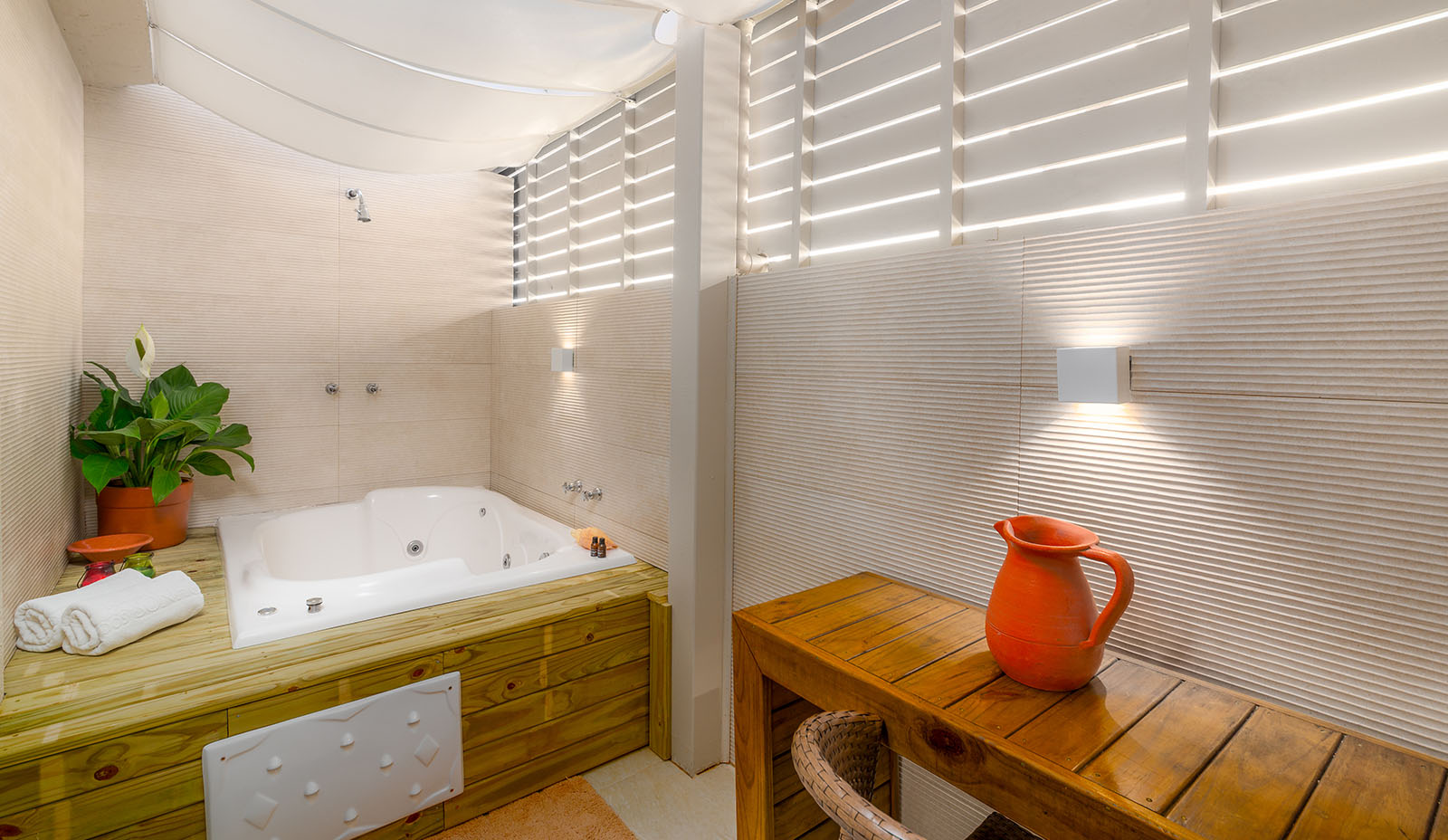 O Apartamento Térreo com hidromassagem é perfeito para você relaxar e descansar na Pousada dos Sonhos. Acorde com o som das ondas, descanse em um quarto confortável e desfrute de uma banheira de hidromassagem com toda a privacidade do seu quarto. Durante a sua estadia, escute o canto dos pássaros e aprecie toda a infraestrutura da área social da Pousada dos Sonhos, com hidromassagem, piscina aquecida e deck com saída exclusiva para a praia de Jurerê. Para coroar a sua estadia, saboreie nosso buffet de café da manhã, diariamente das 7h às 10h.