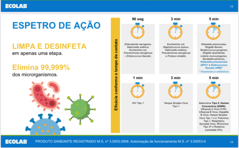 Material de limpeza e higienização especial da linha ECOLAB (certificada pela ANVISA);